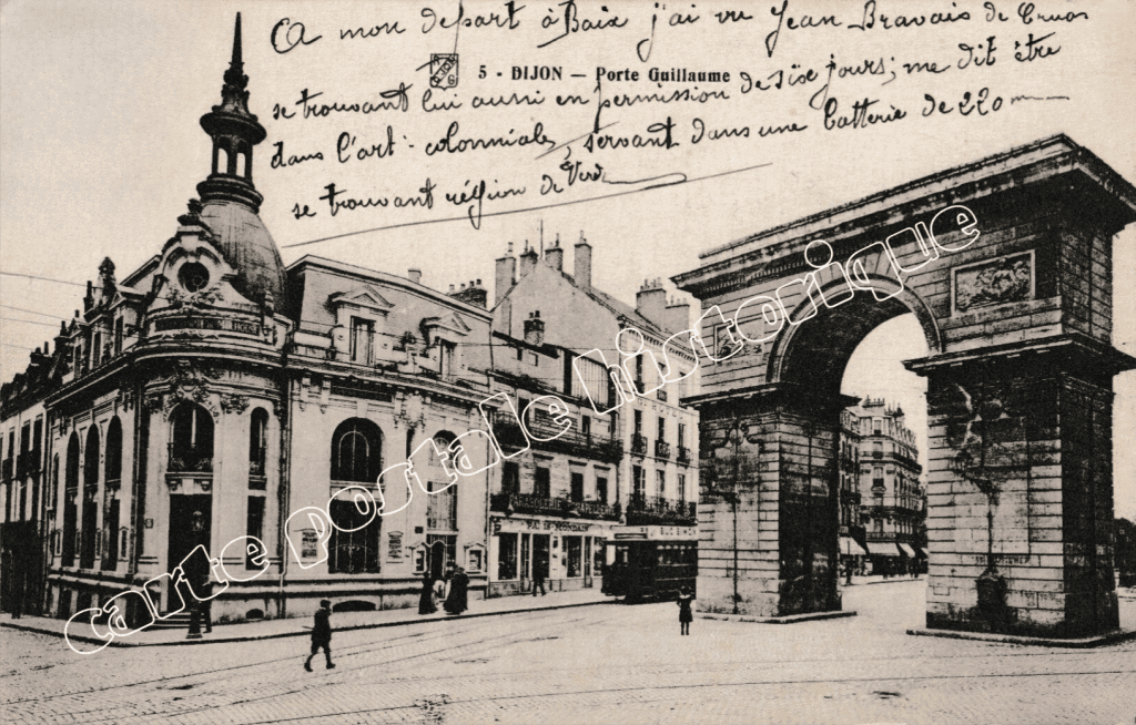 En 1916, en pleine Première Guerre mondiale, la Porte Guillaume à Dijon se dressait déjà comme un symbole emblématique de la ville.