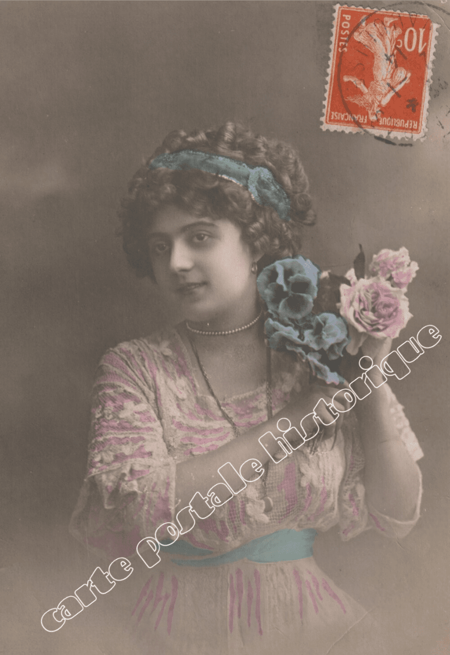Découvrez cette authentique carte postale ancienne représentant une femme au bouquet en 1914, véritable témoignage de l’esthétique et de la sensibilité artistique du début du XXᵉ siècle. À travers ce portrait féminin délicat, la carte illustre les codes de l’élégance féminine de la fin de la Belle Époque, à la veille de la Première Guerre mondiale.