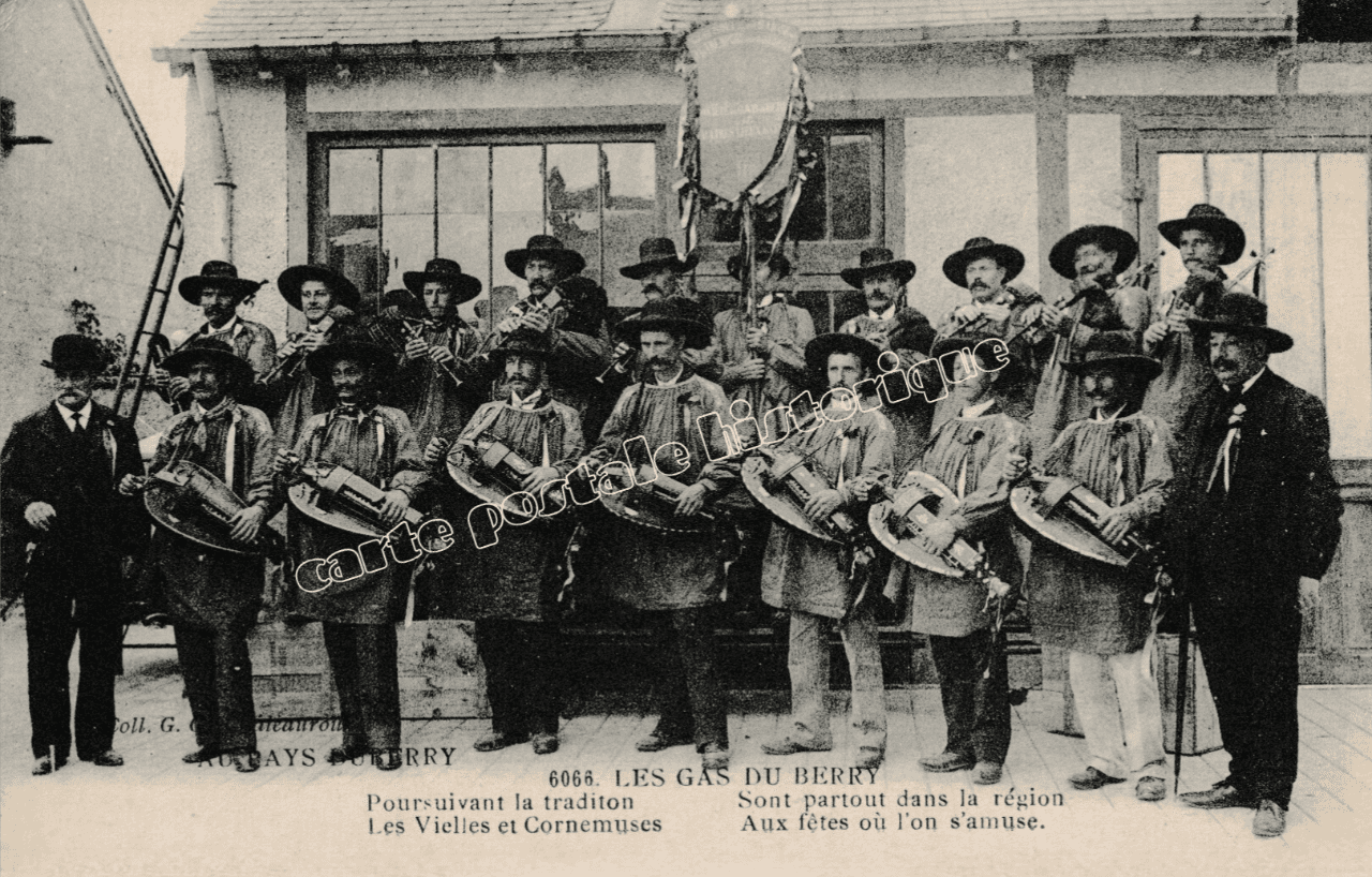À travers cette carte postale historique, le Berry dévoile son identité rurale et culturelle, mettant en avant la fierté régionale et la transmission des savoir-faire populaires. Les attitudes, les costumes et la mise en scène rappellent l’importance des traditions locales à une époque marquée par de profonds bouleversements sociaux et historiques.