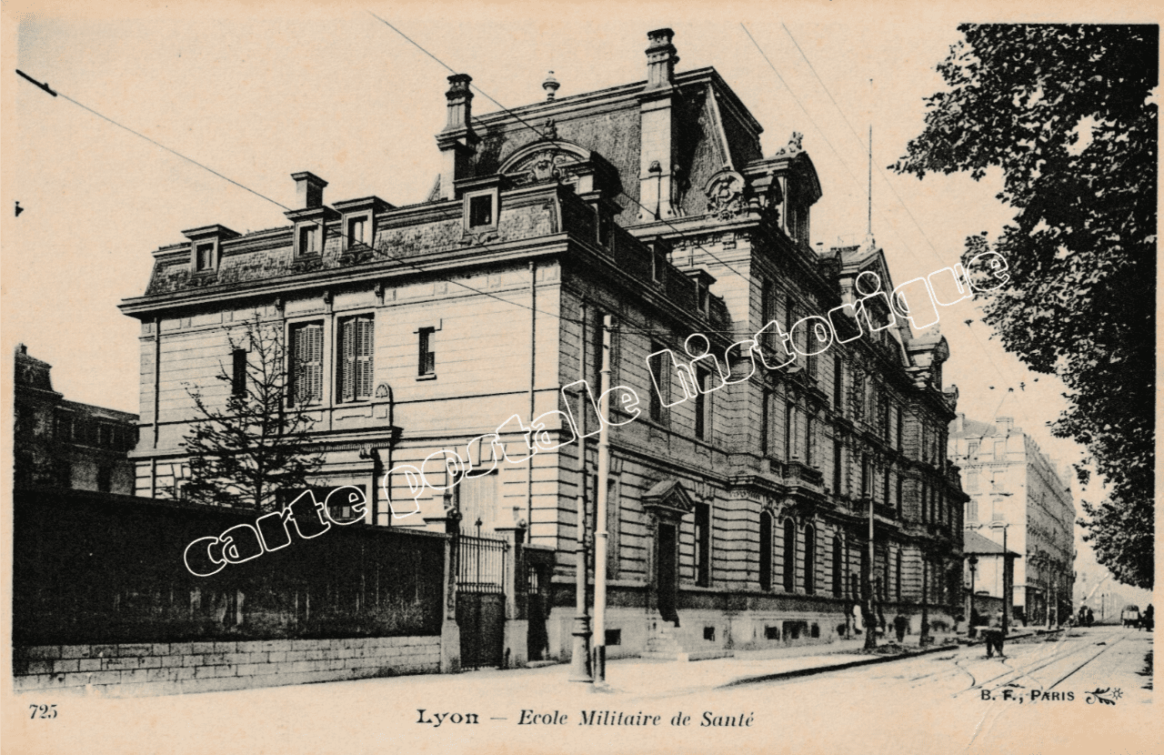 Carte postale ancienne de l’École militaire de santé à Lyon en 1912