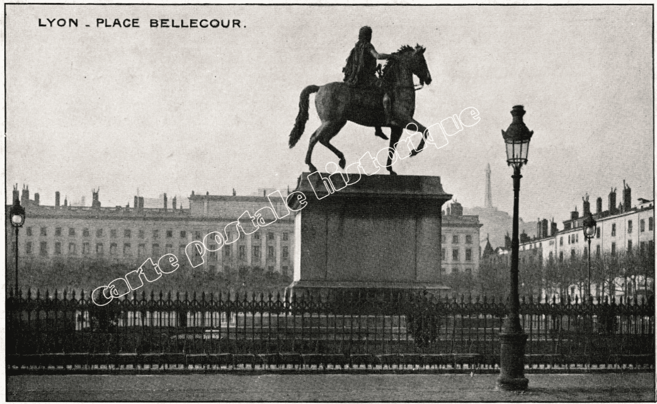 Découvrez cette authentique carte postale ancienne de Lyon – Place Bellecour (1916), représentant l’une des places les plus emblématiques de France au cœur de la ville de Lyon. Véritable centre névralgique de la cité, la place Bellecour apparaît ici dans son état au début du XXᵉ siècle, à une période marquée par la Première Guerre mondiale.