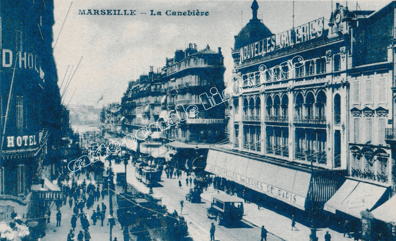 Découvrez cette authentique carte postale ancienne de Marseille – La Canebière (1918), représentant l’une des avenues les plus emblématiques du centre-ville. Cette carte illustre l’animation quotidienne de La Canebière, avec ses commerces, tramways, passants et bâtiments caractéristiques du début du XXᵉ siècle.