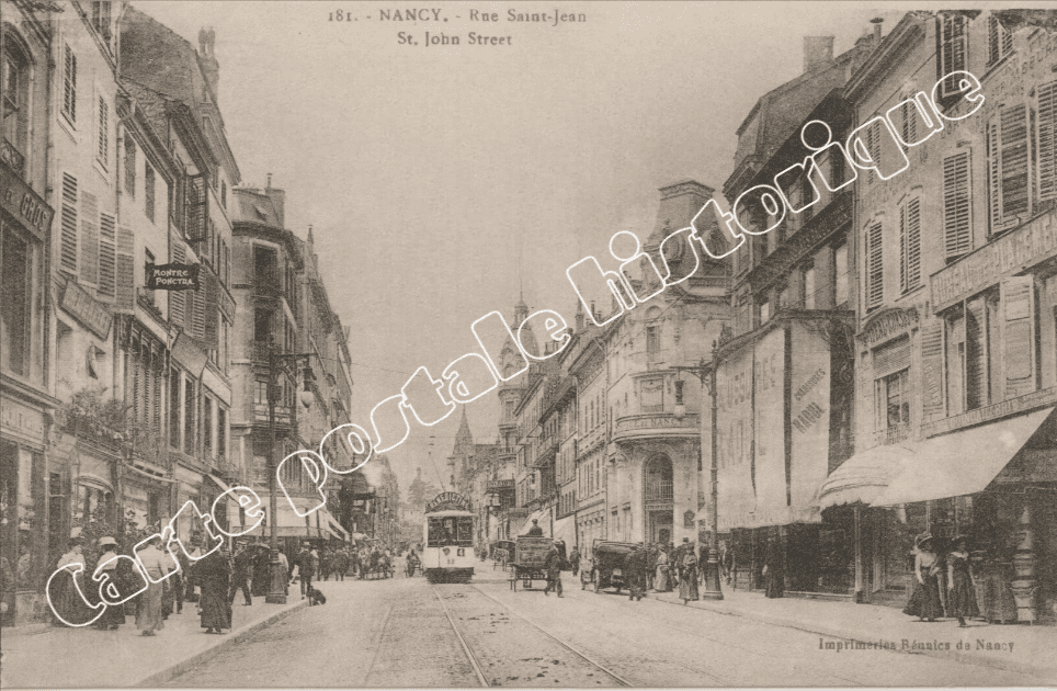 Découvrez cette authentique carte postale ancienne de Nancy – Rue Saint-Jean (1918), représentant l’une des artères emblématiques du centre-ville.