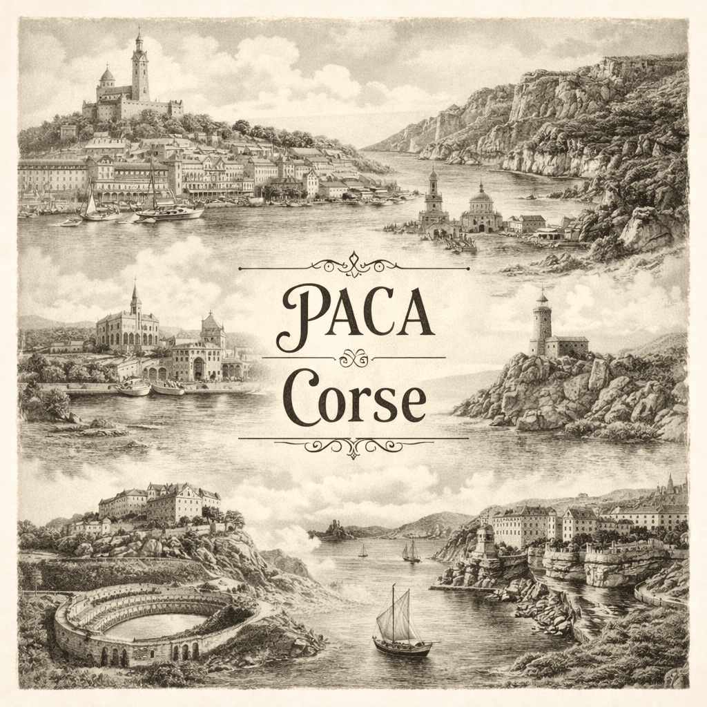 Parcourez cette catégorie PACA et Corse et laissez-vous séduire par une balade historique entre Provence, Alpes, Méditerranée et île de Beauté, où chaque carte raconte un fragment d’histoire.