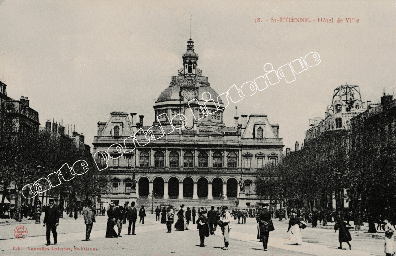 Carte postale ancienne de l’Hôtel de Ville de Saint-Étienne en 1907