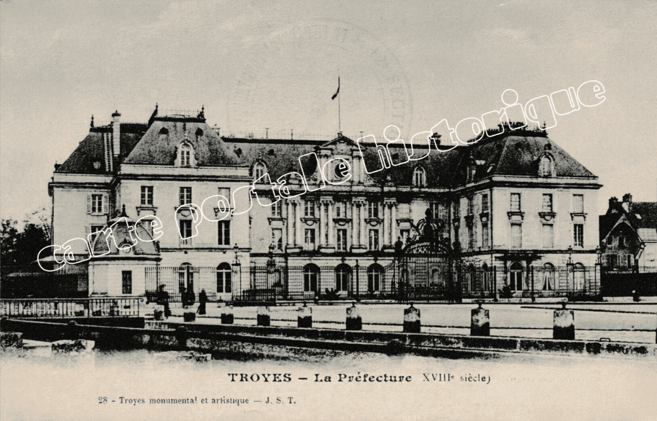 Découvrez cette authentique carte postale ancienne de Troyes – La Préfecture (1915), représentant l’édifice administratif emblématique de la ville. Cette carte met en valeur l’architecture classique de la Préfecture, ainsi que la vie urbaine à Troyes pendant la Première Guerre mondiale.